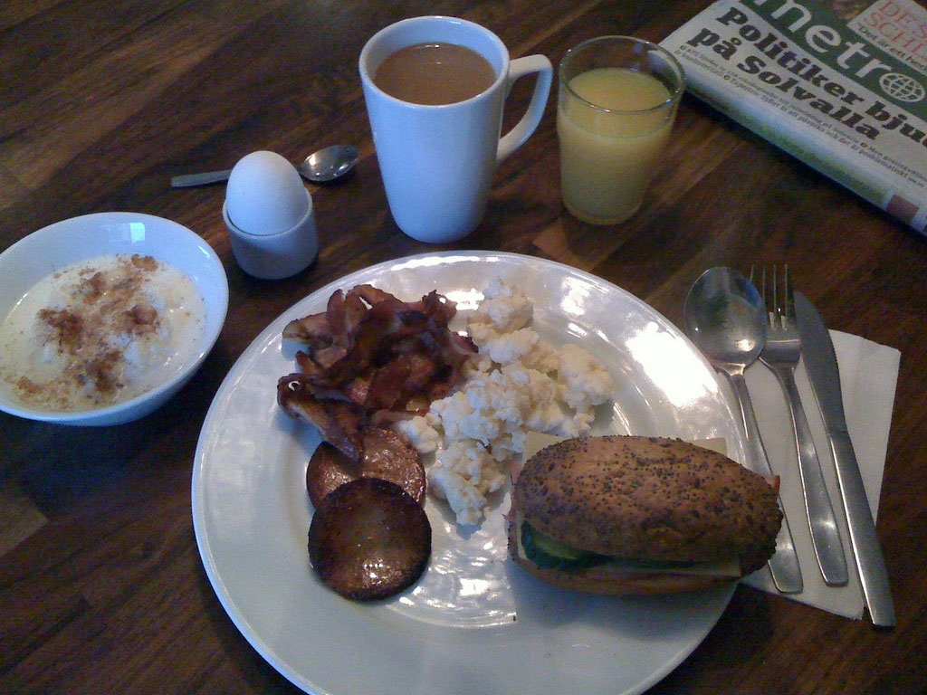 Servicen är lite loj, men inget att klaga på, jag får min talrik och min bryggkaffe och promenerar bort till frukostbuffén, och OJ! Vilken buffé! Det här är samma utbud som på de större hotellen med allt från klassiska fil och flingor till ägg och bacon. Fräscht, snyggt, rent och inbjudande!