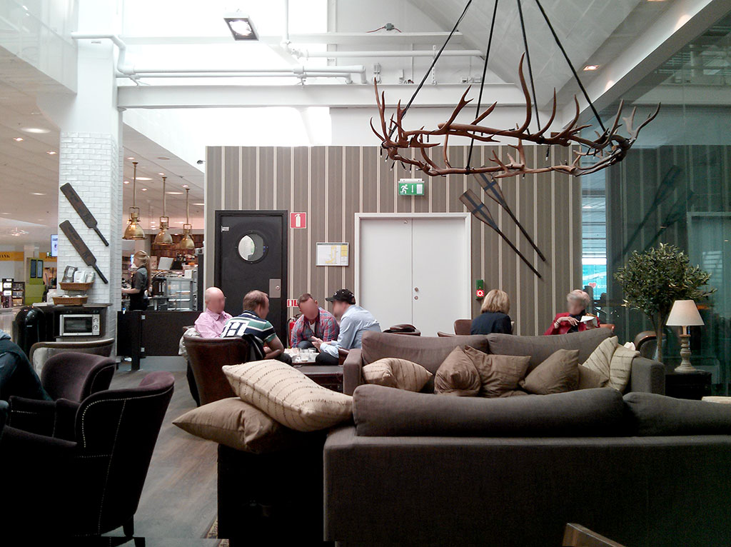 Annars är servicen och utbudet precis det samma som man är van vid, inga konstigheter med andra ord. Jag bestämmer mig för en lite större frukost med yoghurt, macka och juice. Lite saftigt pris (85kr) kanske, men i utrikeshallen är ju allt annat dyrare också.